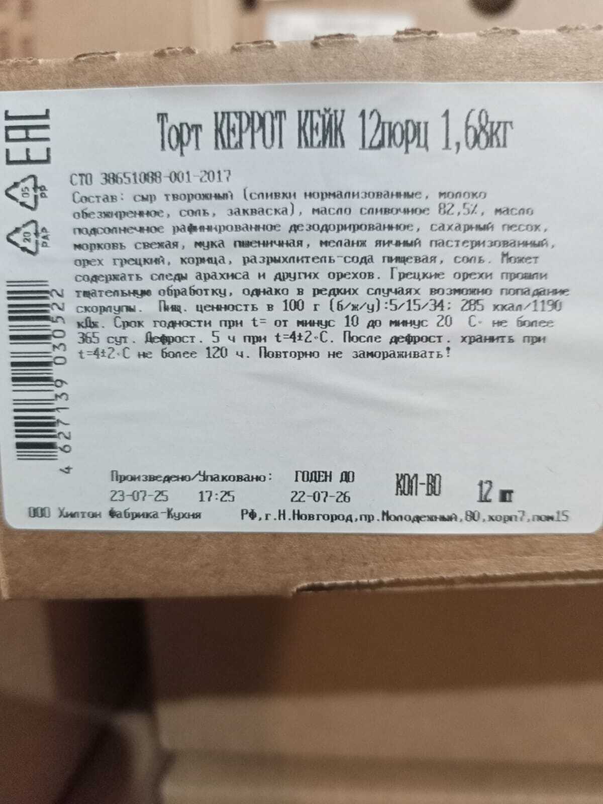 Условия хранения Хранить при температуре не выше -18°С. Дефростация 6...
