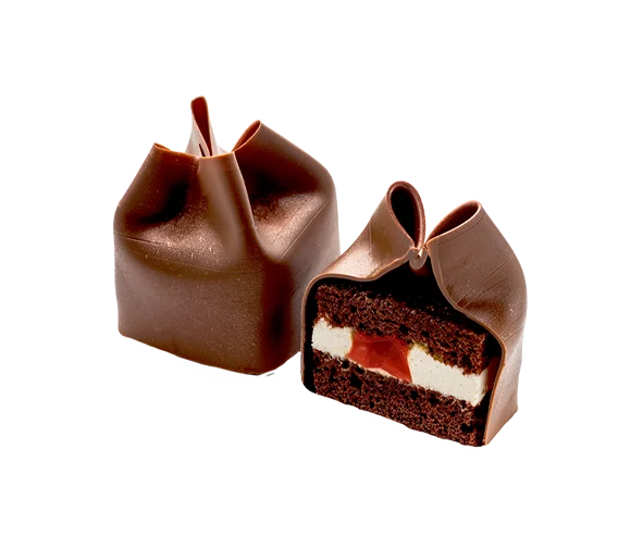 Пирожные "Черный лес" кондитерской фабрики "Кристоф" Десерт выполнен в изящной коронообразной форме, состоящей из бельгийского шоколада высочайшего качества, внутри десерт составляют два слоя шоколадного масляного бисквита. Между ними чередуются два слоя взбитых воздушных сливок и вишни.