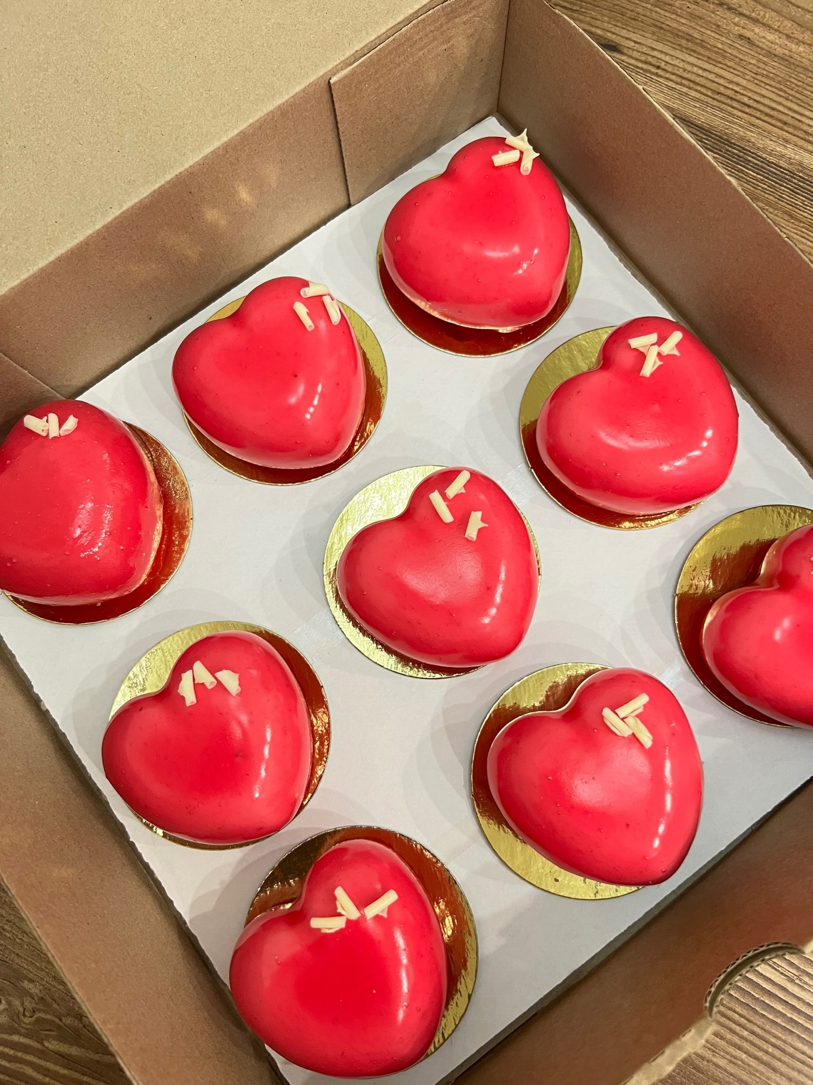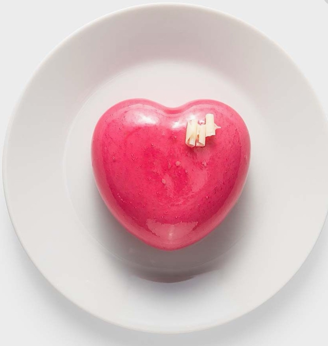 Мусс на основе натурального банана с начинкой из клубничного конфитюра.